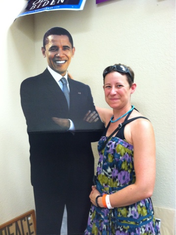 Got all the tents set up with help from a neighbor. Went to do a load of laundry. It was a pretty easy support day. I get back to the site and the heat is still pretty intense but the shade helps. As everyone is getting in and cleaned up, we are searching for food and a cool space to land. The Marshall County Democrats were hosting a cooling spot so we visited with the President.